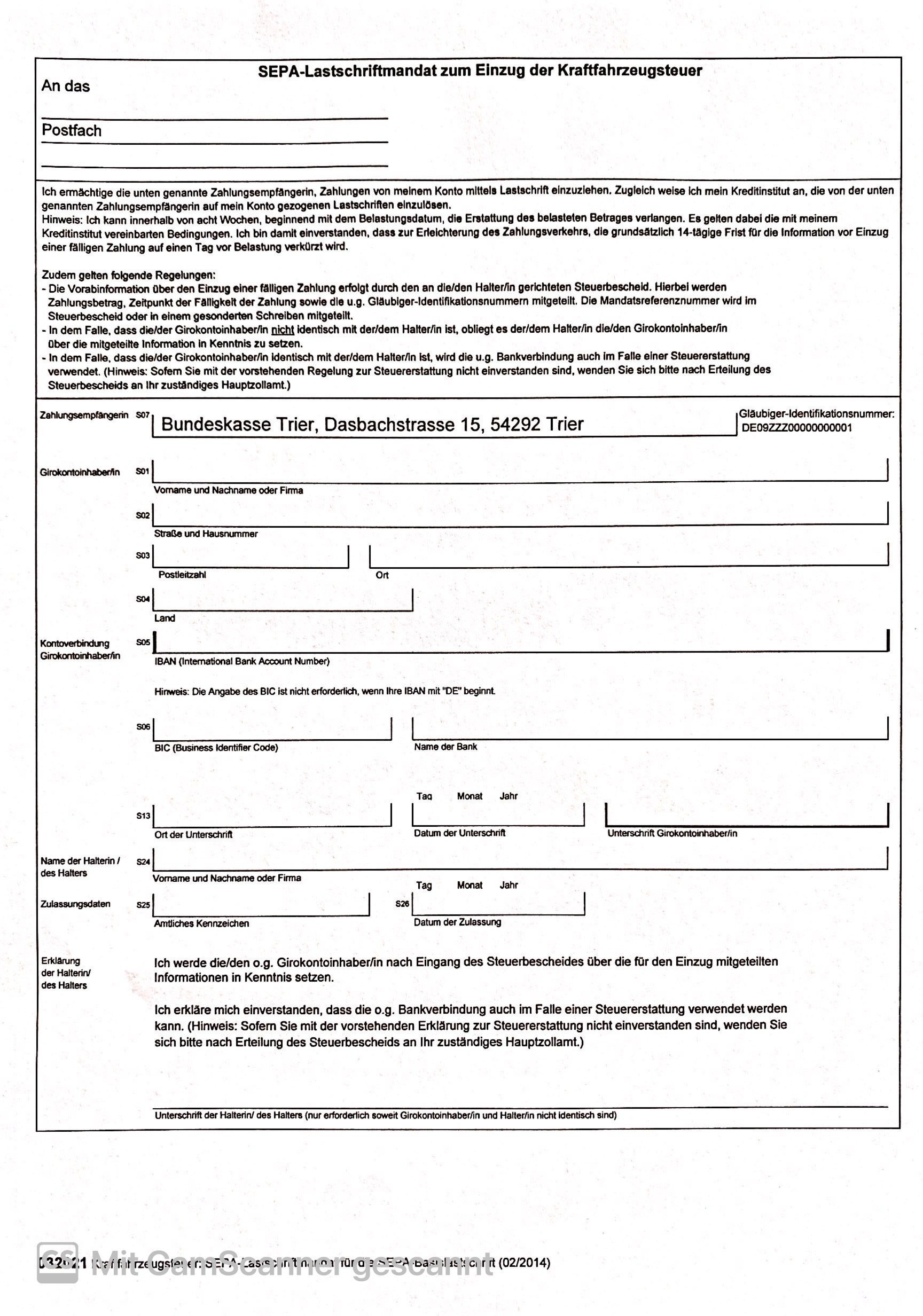 Bitte achten Sie darauf, dass das SEPA-Lastschriftmandat vollständig und korrekt ausgefüllt ist. Besonders wichtig ist, dass die Unterschrift exakt mit der Unterschrift auf Ihrem Ausweisdokument übereinstimmt. Andernfalls kann es zu Problemen bei der Zulassung kommen.